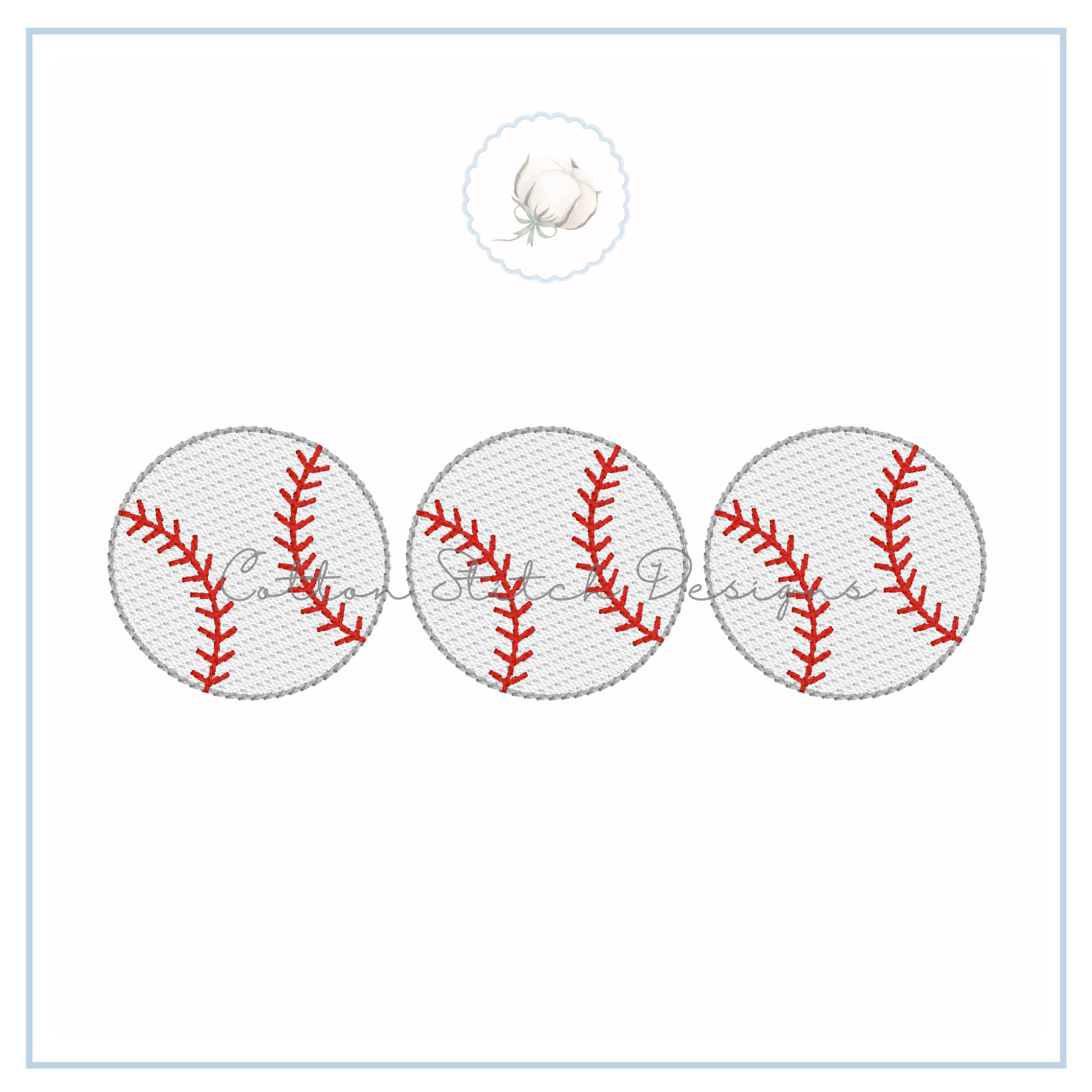 Baseball Trio Design is a sketch stitch machine embroidery design, designed to have a lower stitch count and a lighter fill than a traditional fill stitch, allowing fabric to show through for a sketch appearance.
