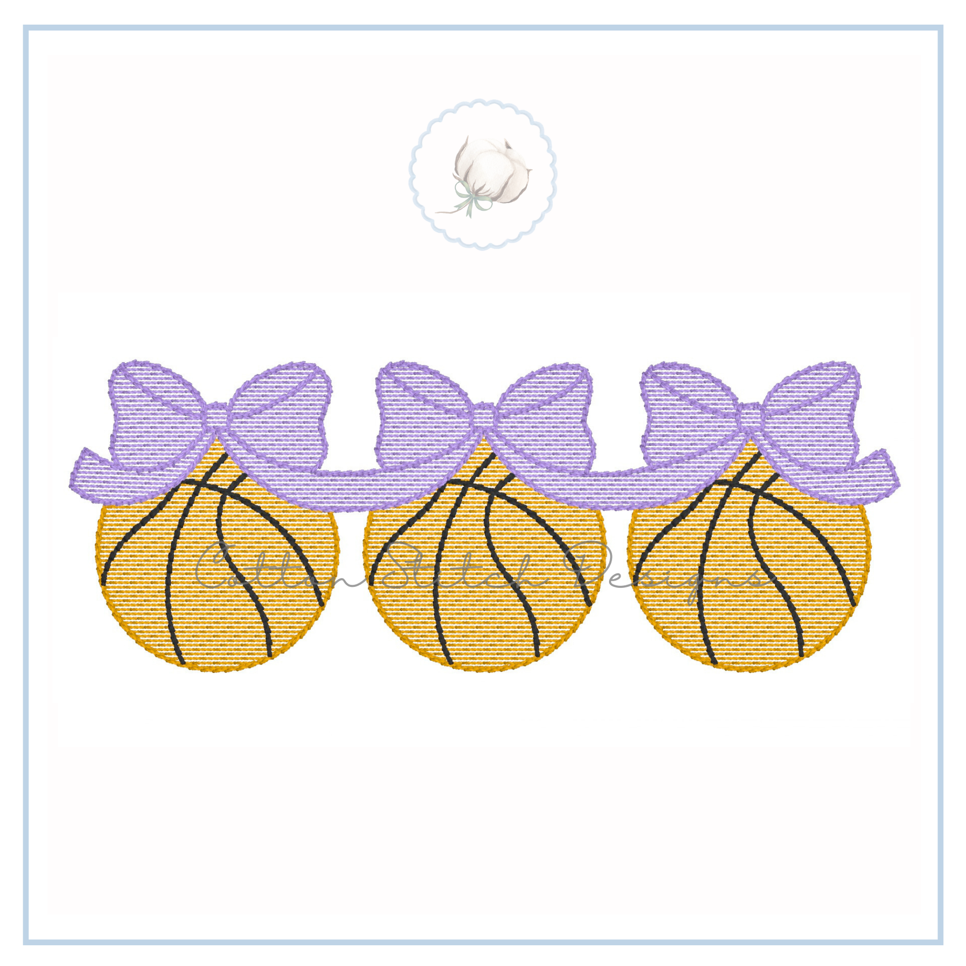 Basketball Bow Trio Design is a sketch stitch machine embroidery design, designed to have a lower stitch count and a lighter fill than a traditional fill stitch, allowing fabric to show through for a sketch appearance.