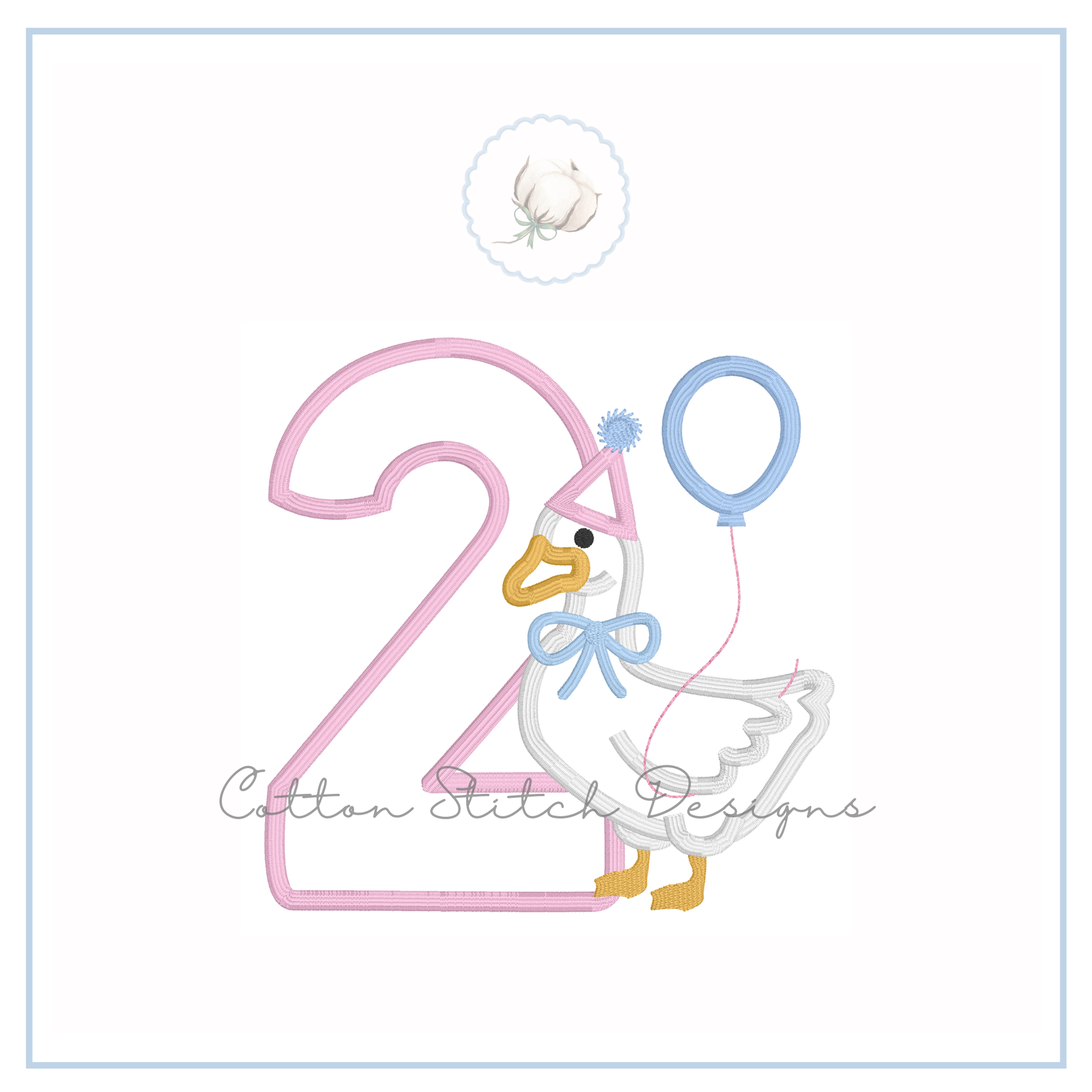 Birthday Goose Two Satin Appliqué Embroidery Design