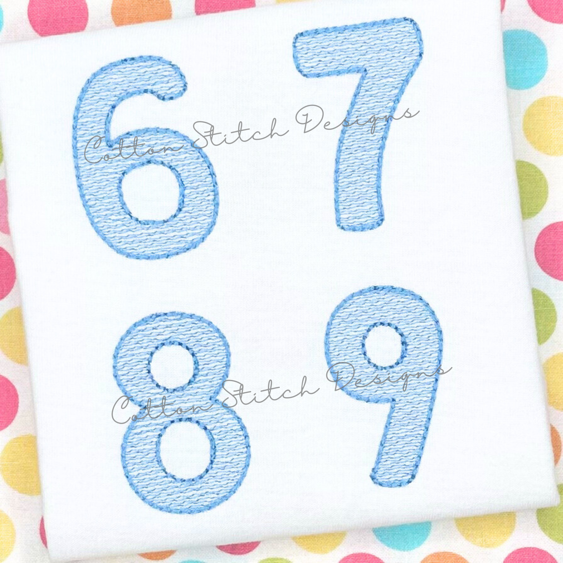 Each Number (0-9) are sketch stitch machine embroidery designs, designed to have a lower stitch count and a lighter fill than a traditional fill stitch. File contains each number with 5 sizes per number. Great for Birthdays, New Years, and more!