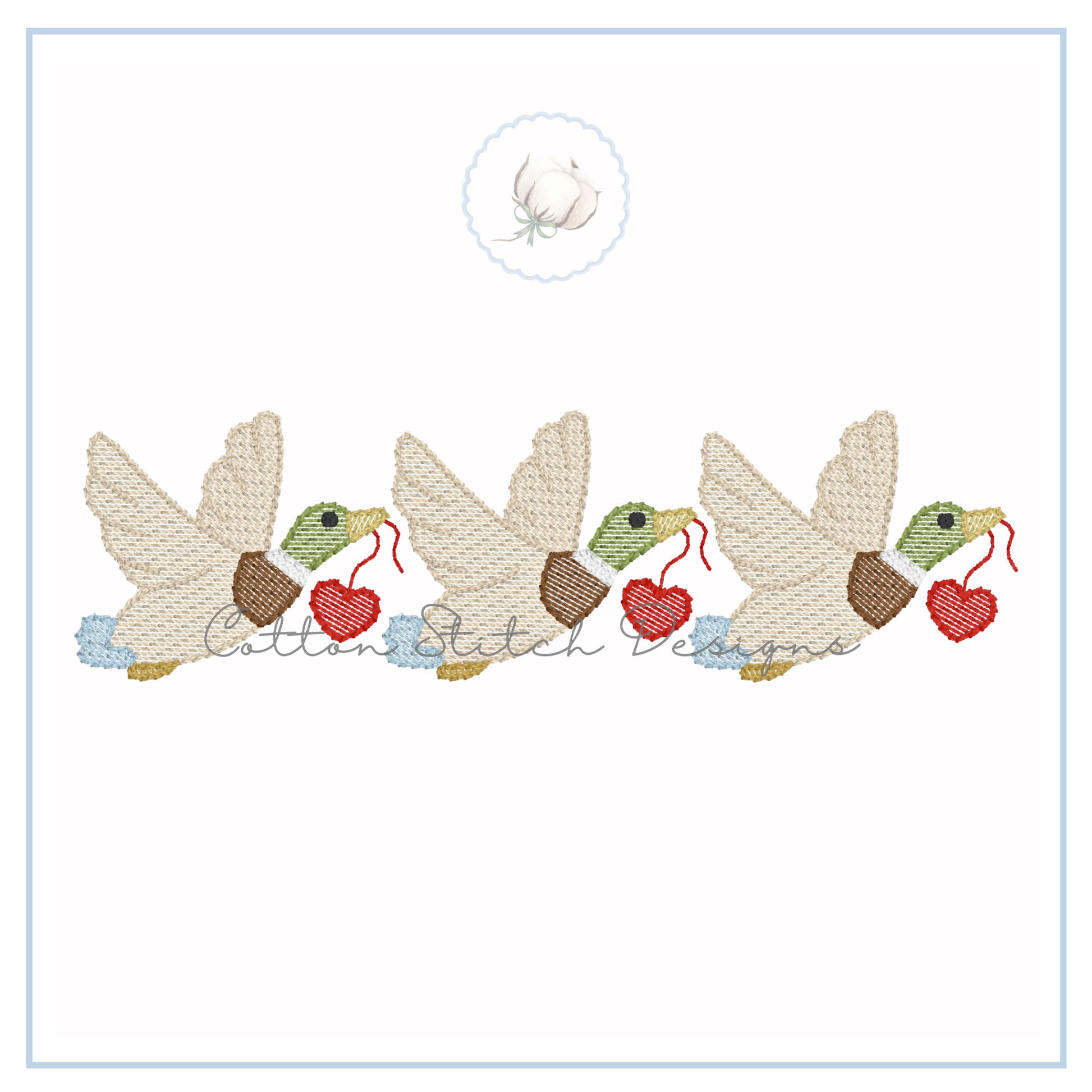 Flying Mallard Duck Heart Trio Embroidery Design