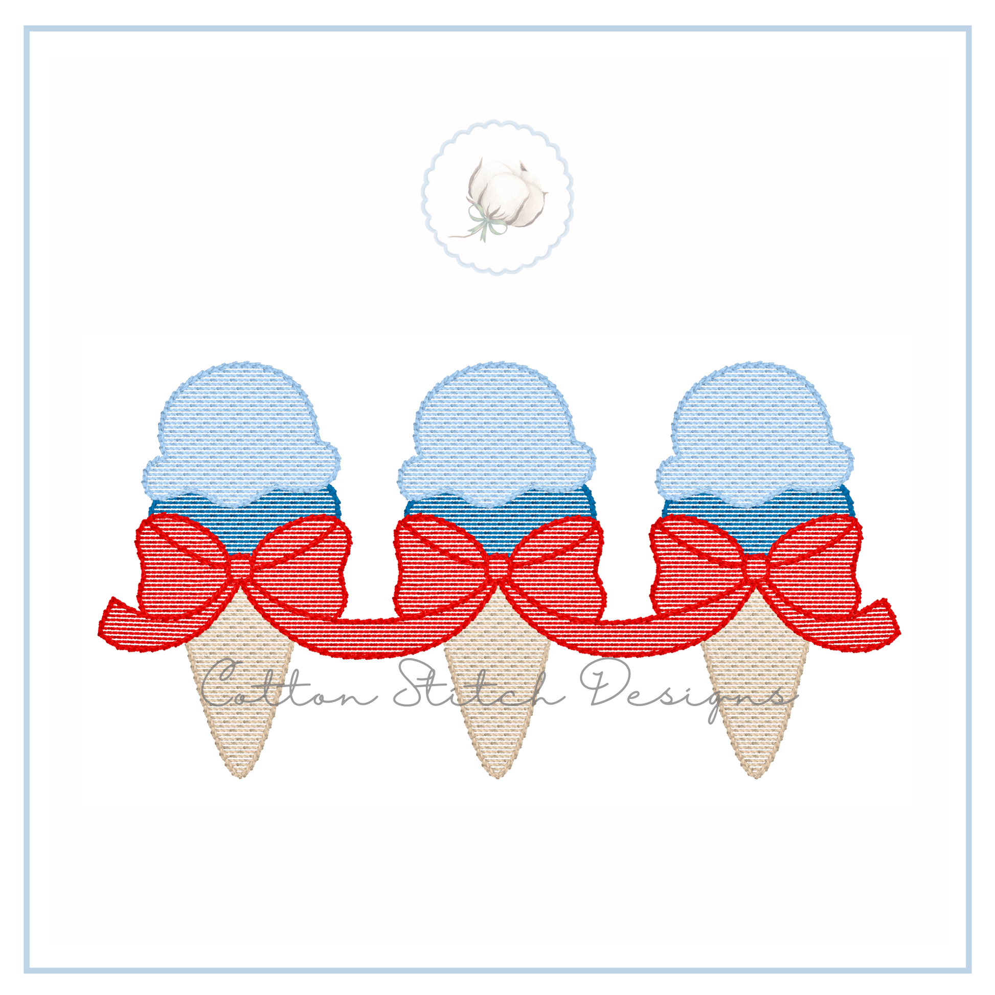 Ice Cream Long Bow Embroidery Design is a sketch stitch machine embroidery design. Designed to have a lower stitch count and a lighter fill than a traditional fill stitch, allowing fabric to show through for a sketch appearance.