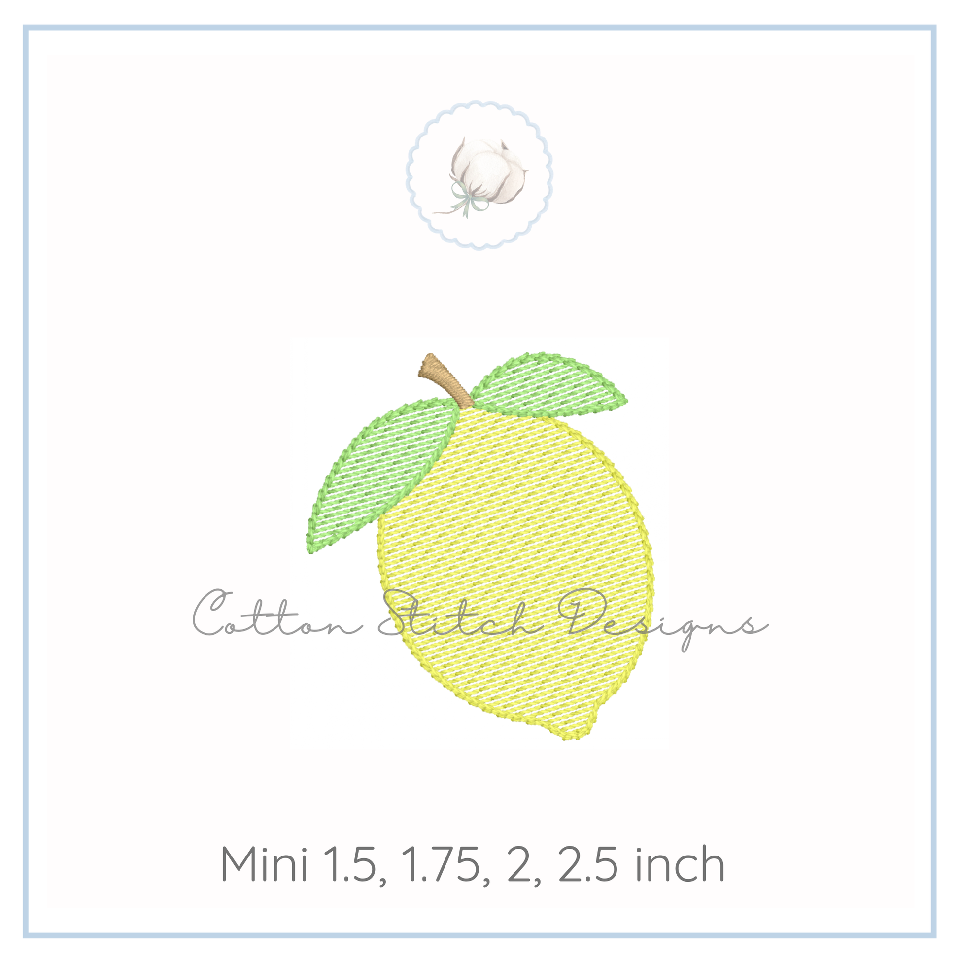 Lemon Mini Design is a sketch stitch machine embroidery design, designed to have a lower stitch count and a lighter fill than a traditional fill stitch, allowing fabric to show through for a sketch appearance.