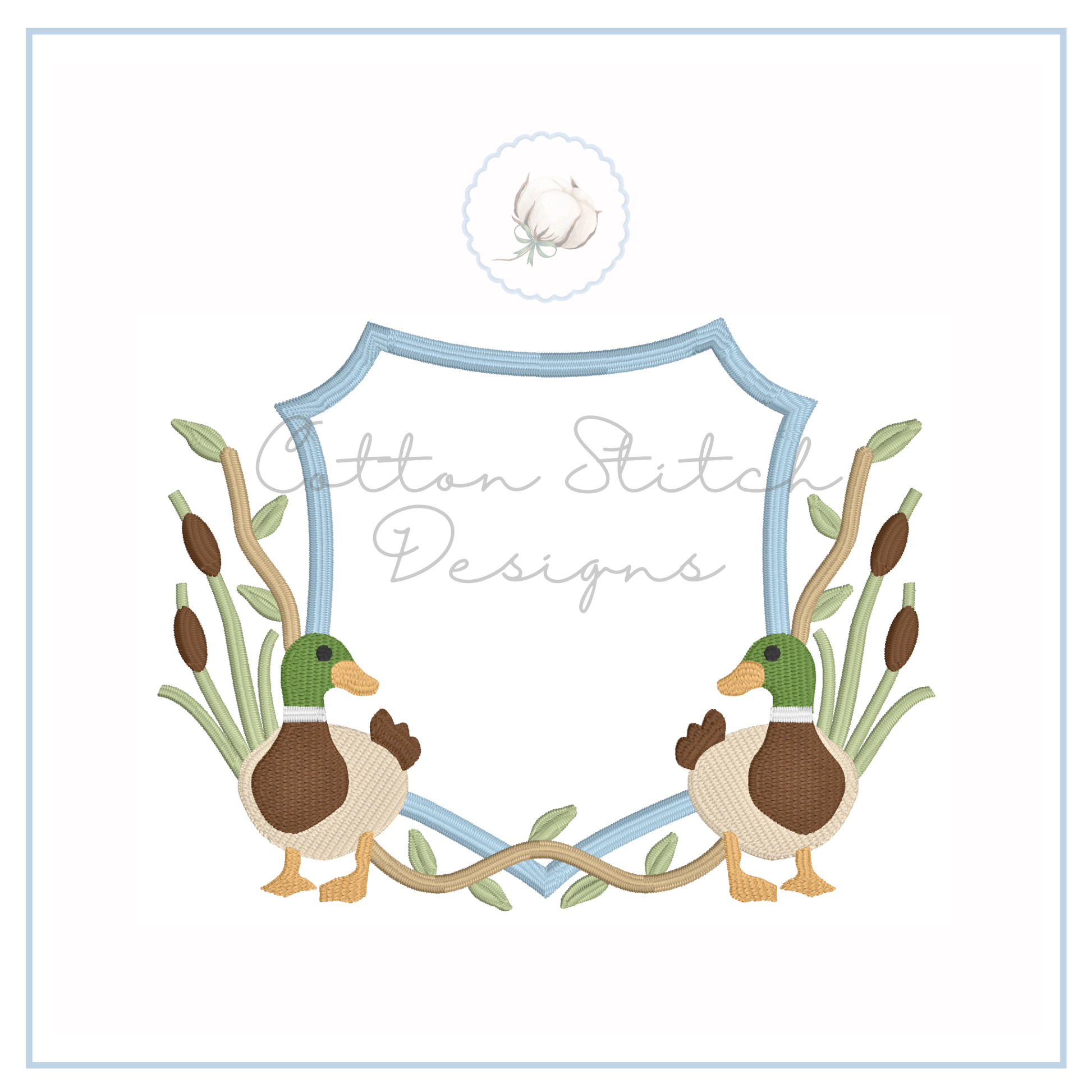 Mallard Duck Monogram Crest Design is a fill stitch machine embroidery design.