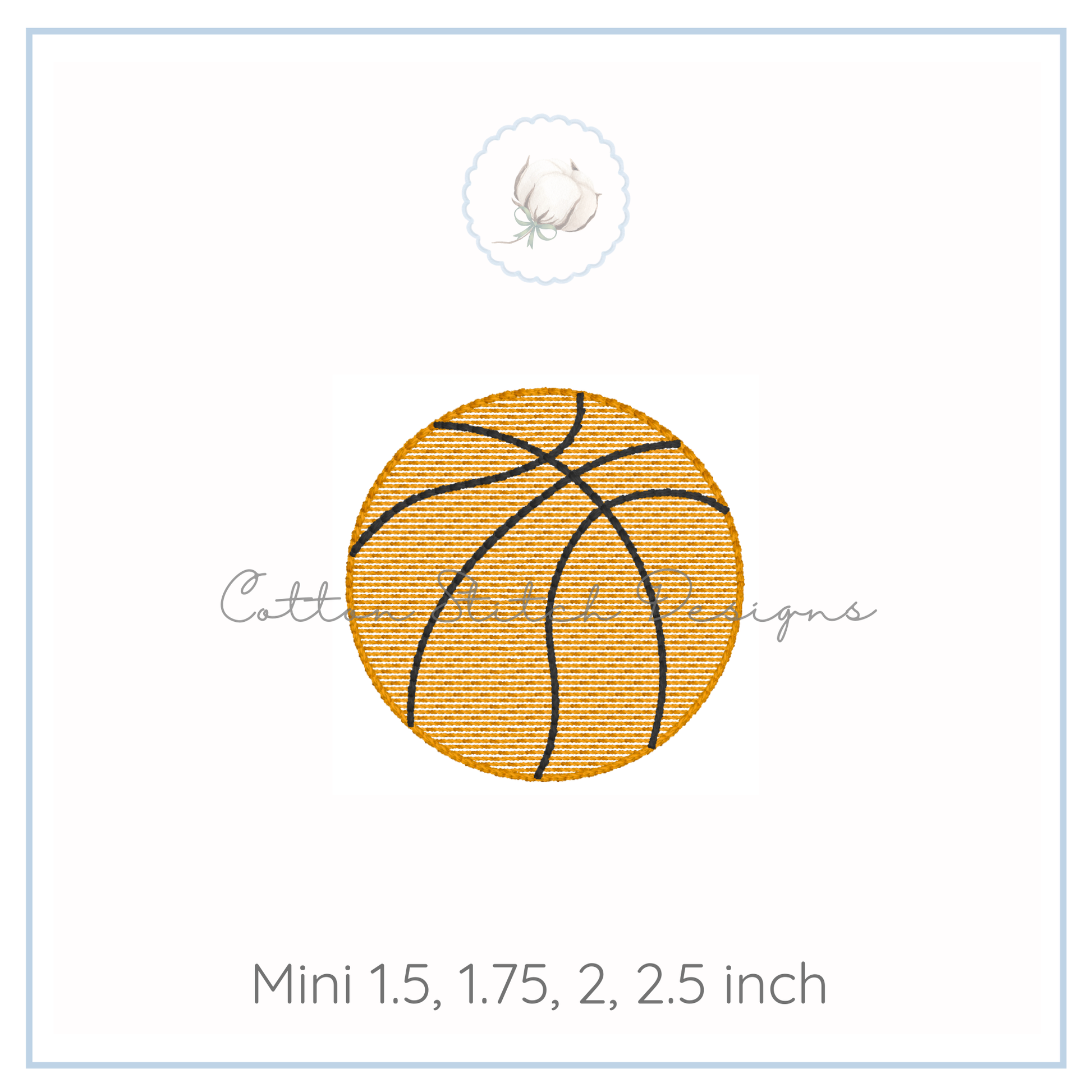 Mini Basketball Design is a sketch stitch machine embroidery design, designed to have a lower stitch count and a lighter fill than a traditional fill stitch, allowing fabric to show through for a sketch appearance.