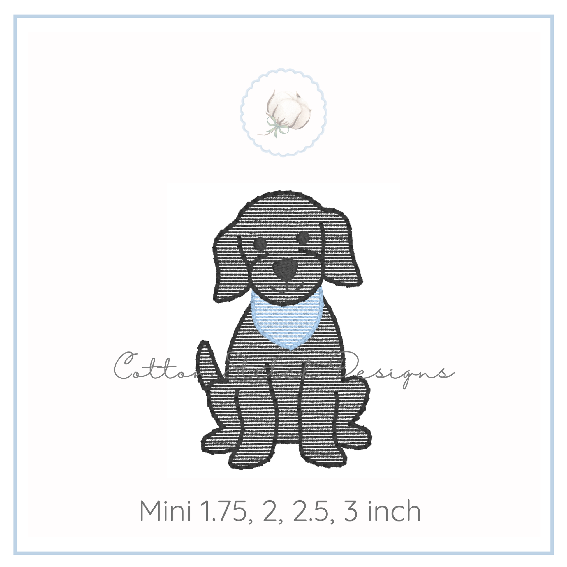 Mini Puppy Design is a sketch stitch machine embroidery design, designed to have a lower stitch count and a lighter fill than a traditional fill stitch, allowing fabric to show through for a sketch appearance.