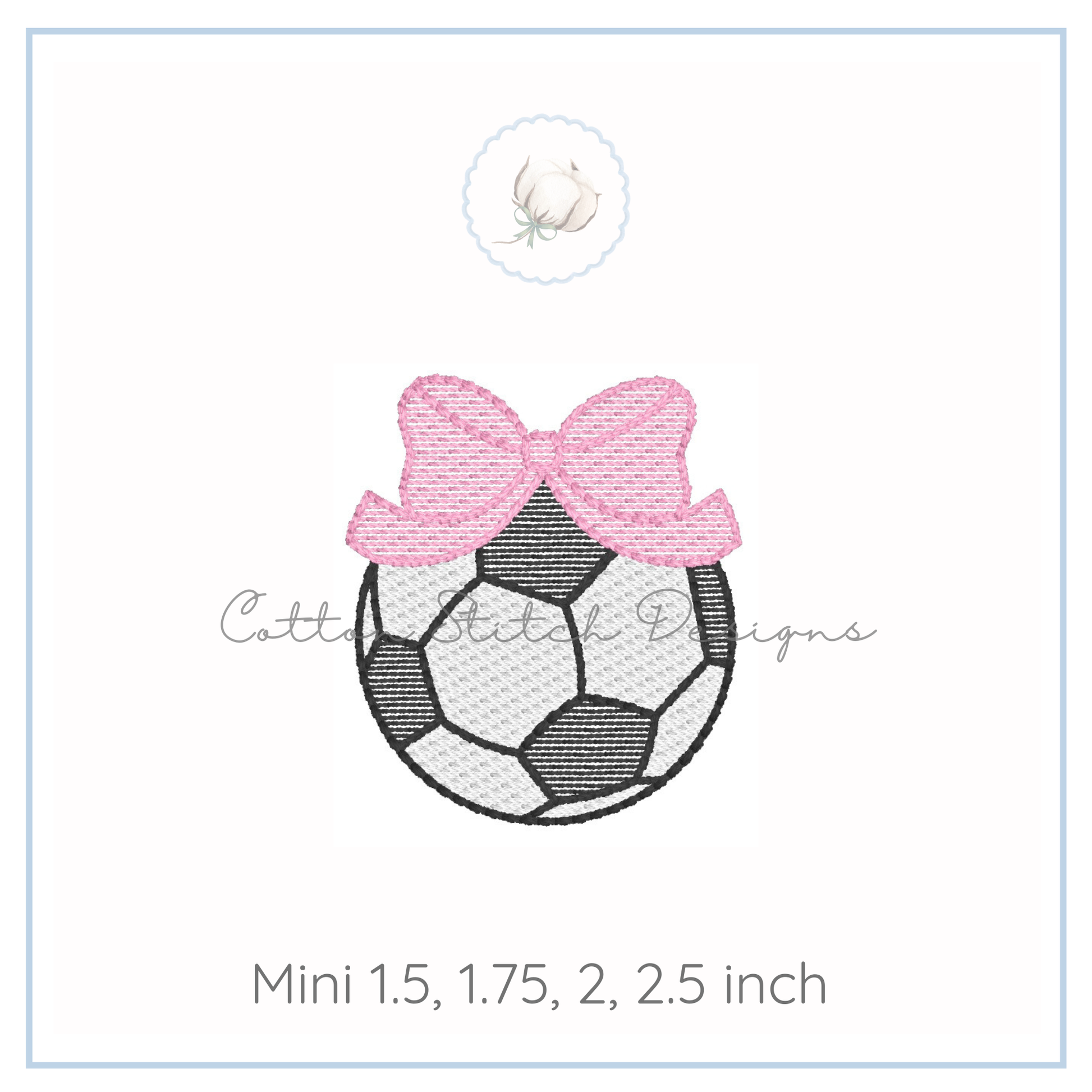 Mini Soccer Ball with Bow Design is a sketch stitch machine embroidery design, designed to have a lower stitch count and a lighter fill than a traditional fill stitch, allowing fabric to show through for a sketch appearance.