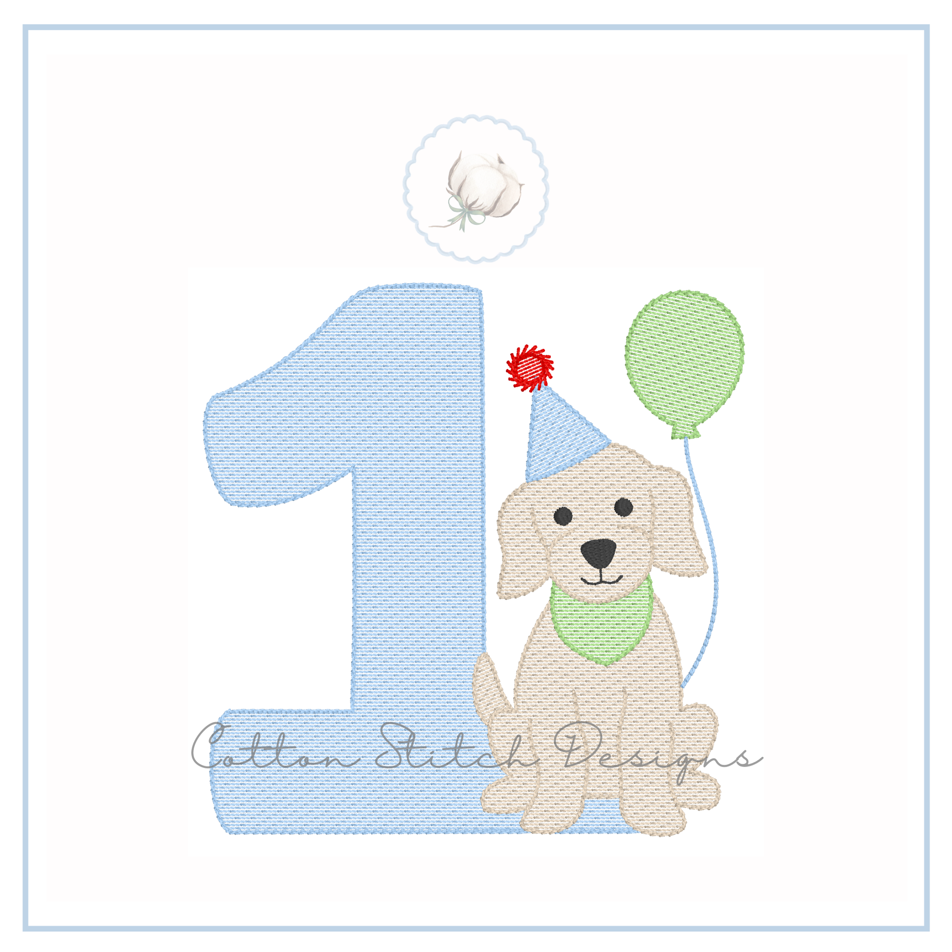 Party Puppy One Design is a sketch stitch machine embroidery design, designed to have a lower stitch count and a lighter fill than a traditional fill stitch, allowing fabric to show through for a sketch appearance.
