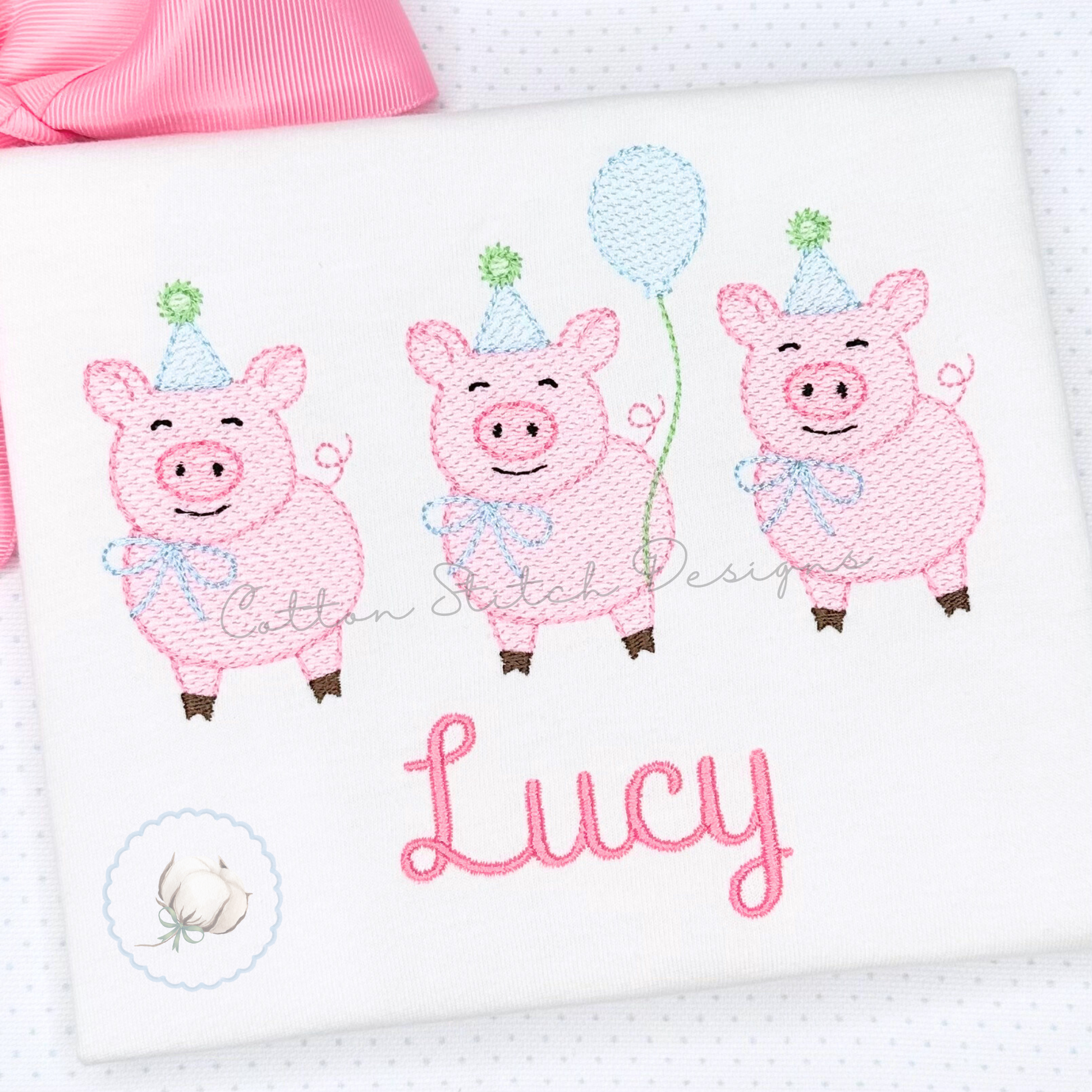 Pig Birthday Trio Embroidery Design