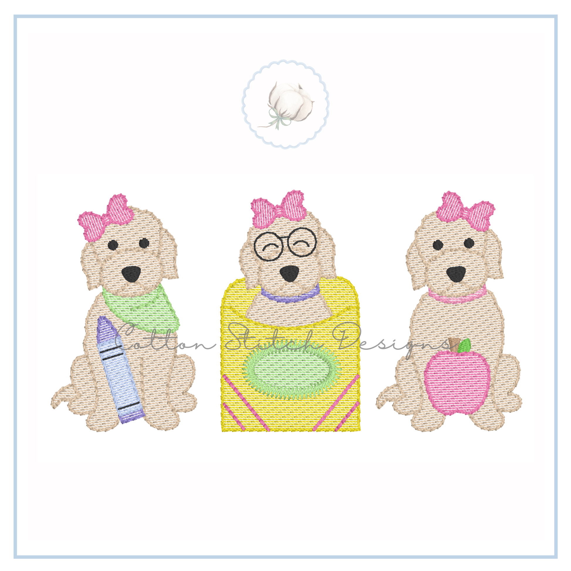 School Doodle Girl Puppy Trio Embroidery Design